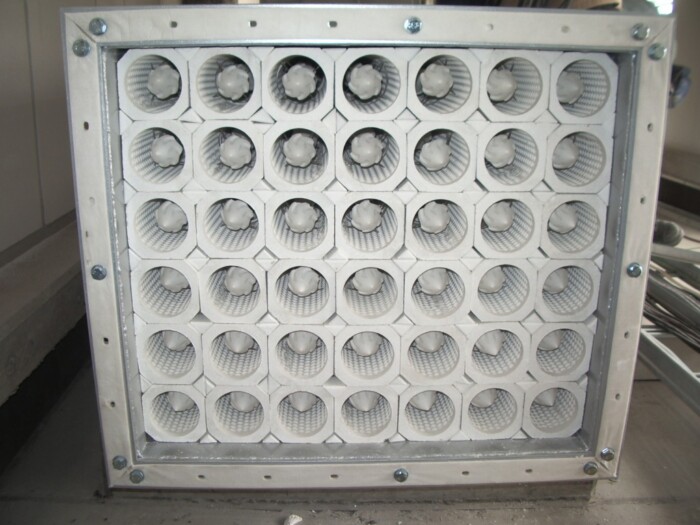 調理排気の脱臭を主な目的として開発した「セラ・ブロック」。 ・調理排気に含まれる”臭気”と”オイルミスト”を除去可能。勿論それ以外にも使用可能。 ・”臭気脱臭”と”オイルミスト除去”、どちらか一方だけではなく「両方を同時に行う!」。 ・”セラミックス触媒”を使用して超寿命を実現! ・交換頻度の減少=交換費用の減少=ランニングコスト&トータルコストの大幅な減少! ・点検・メンテナンスは容易。